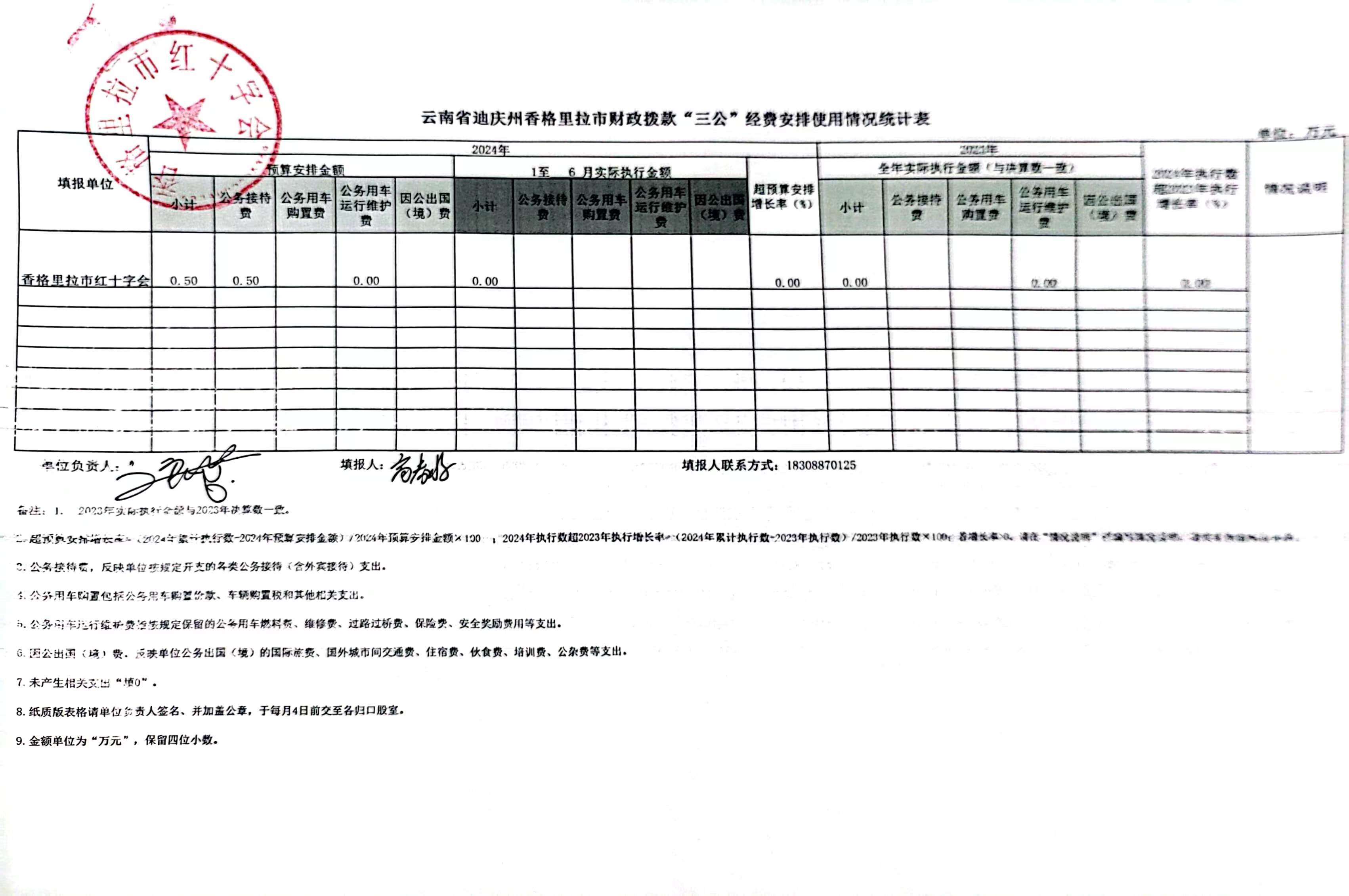 香格里拉市红十字会三公经费执行情况表(1-6月)