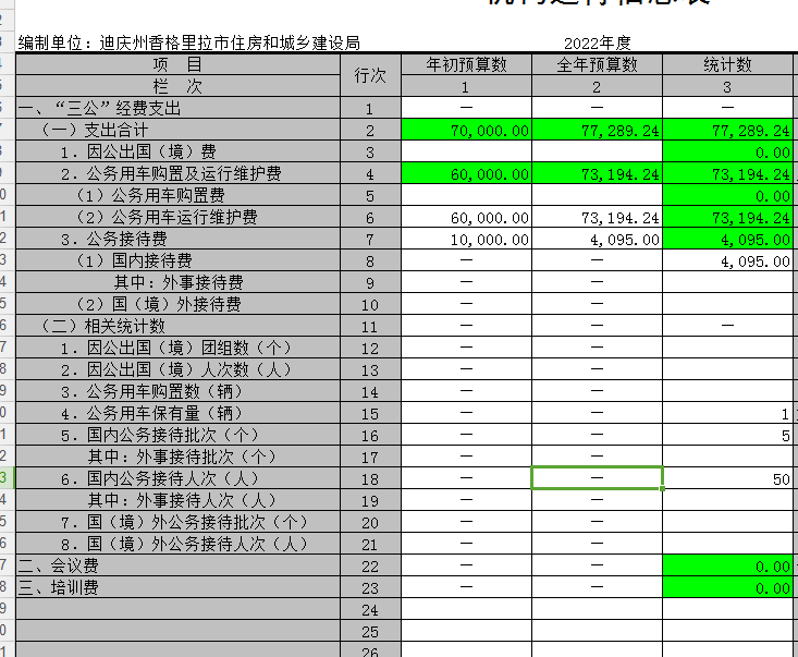 香格里拉市综合行政执法局2022年第四季度“三公”经费支出动态统计表