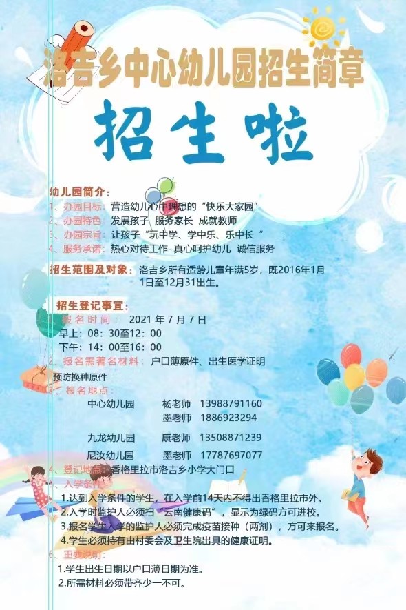 2021年洛吉乡中心幼儿园招生了