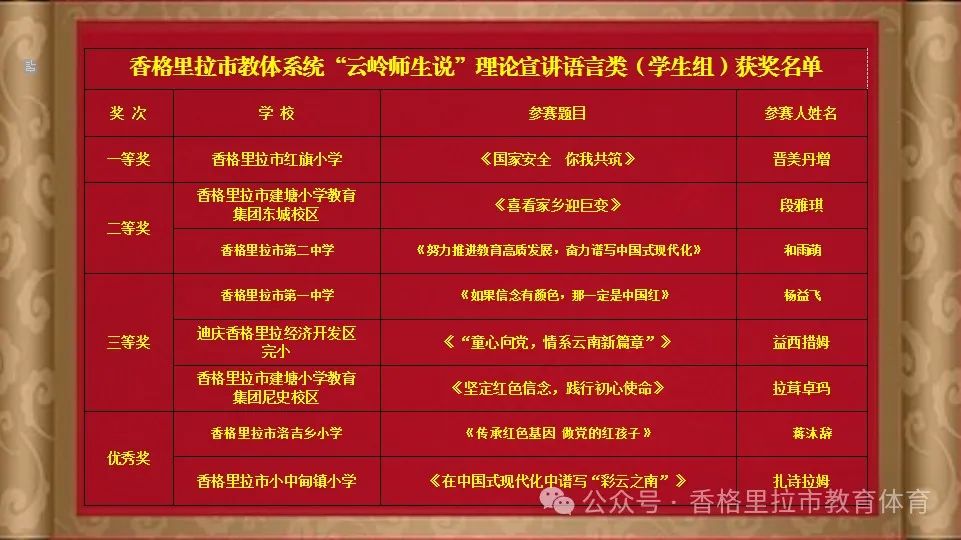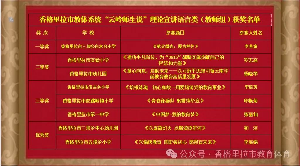 【雪域红烛·五全育人】香格里拉市教体系统“云岭师生说”理论宣讲比赛获奖名单来啦!