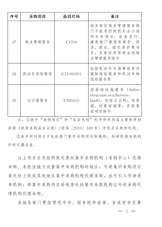 政府集中采购目录及标准
