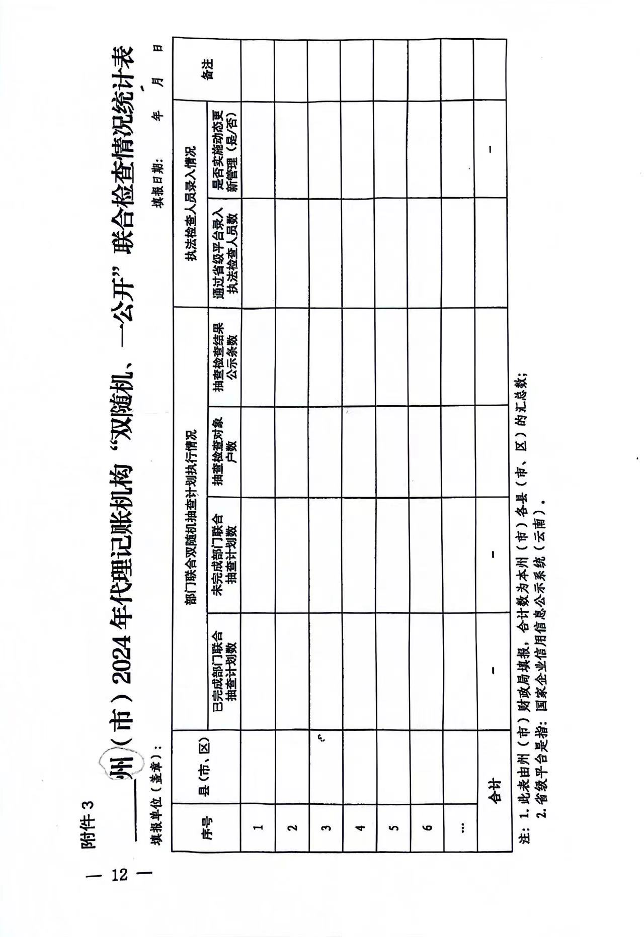 3.州(市)2024年代理记账机构“双随机、一公开”联合检查情况统计表