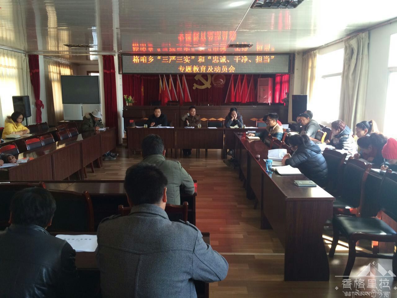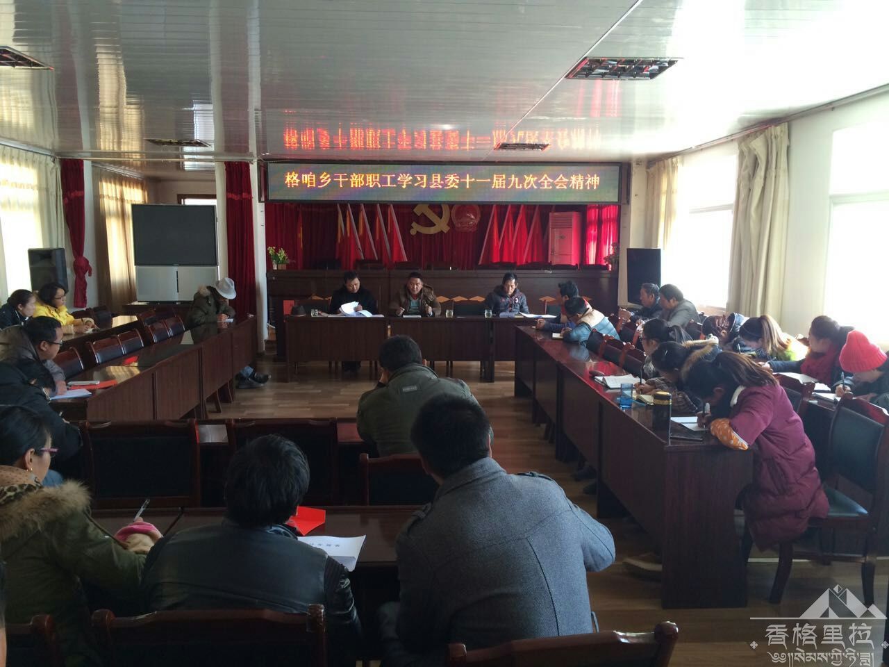 为深入贯彻落实县委十一届九次全会精神,更好的开展2015年全乡各项工作,格咱乡于2015年1月27日召开关于近期各项会议文件精神学习会。会上,乡党委书记郭丰尚同志就县委十一届九次全会精神对全乡干部职工做出了认真细致的解读,学习氛围浓厚。