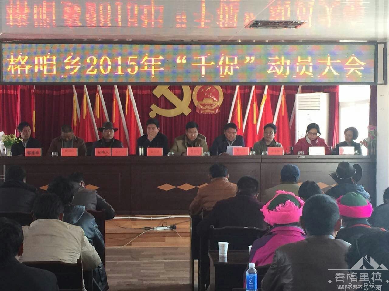 2015年3月12日上午,格咱乡召开“深入宣传贯彻十八届四中全会精神,千名干部下基层推进美丽格咱建设”活动动员大会。会议由格咱乡乡长史小松主持,千促”工作格咱乡工作组州安监局党组书记张玉清同志;县委常委宣传部部长鲁志军同志作了重要讲话,格咱乡党委书记郭丰尚同志作了动员讲话。