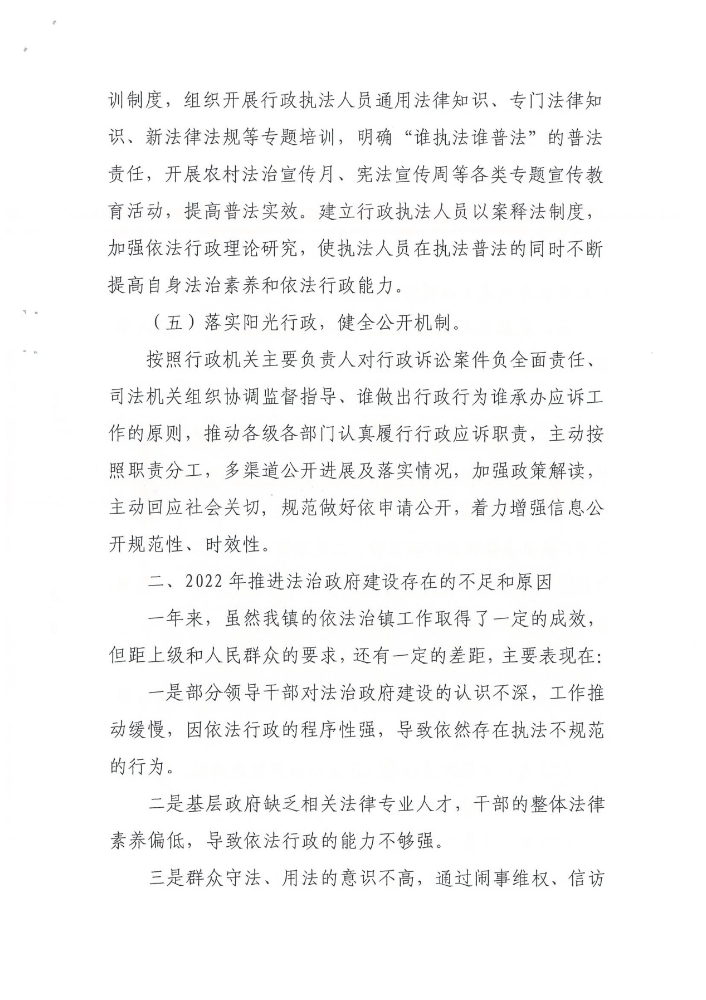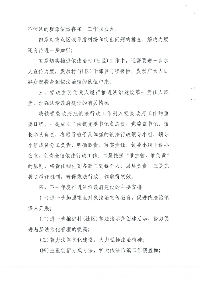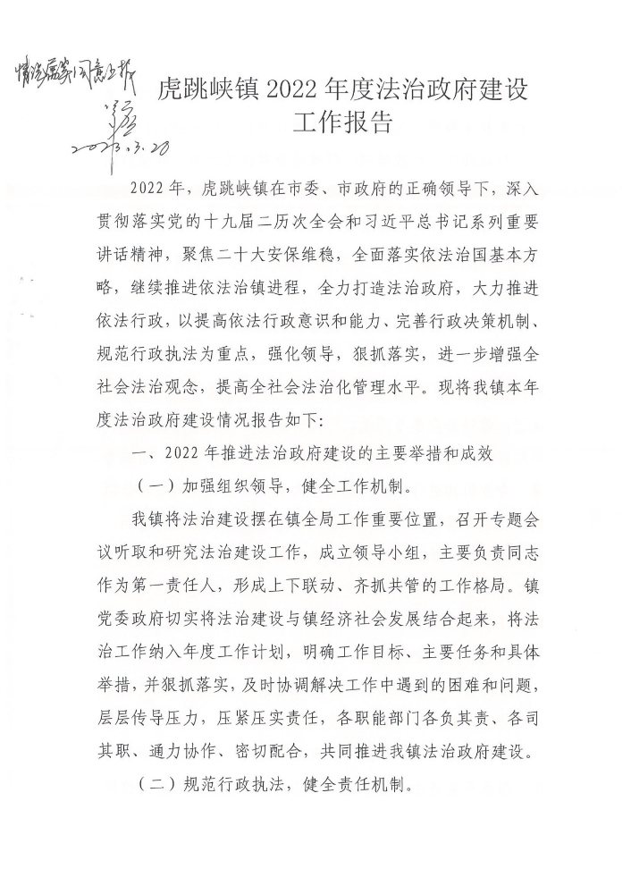 虎跳峡镇关于2023年度法治政府建设工作开展情况的报告