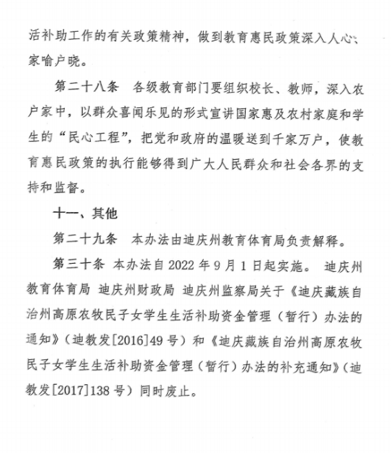 香格里拉市教育体育局关于转发《迪庆藏族自治州高原农牧民子女学生生活补助资金管理办法》