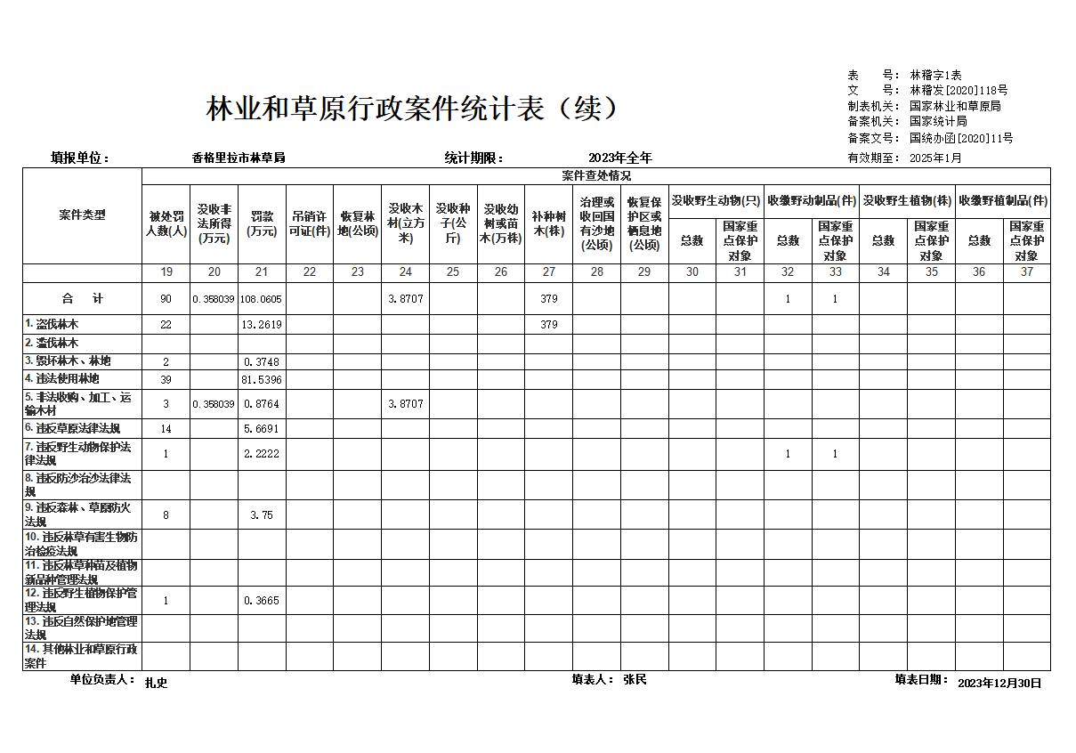 2024年度林业和草原行政案件统计表