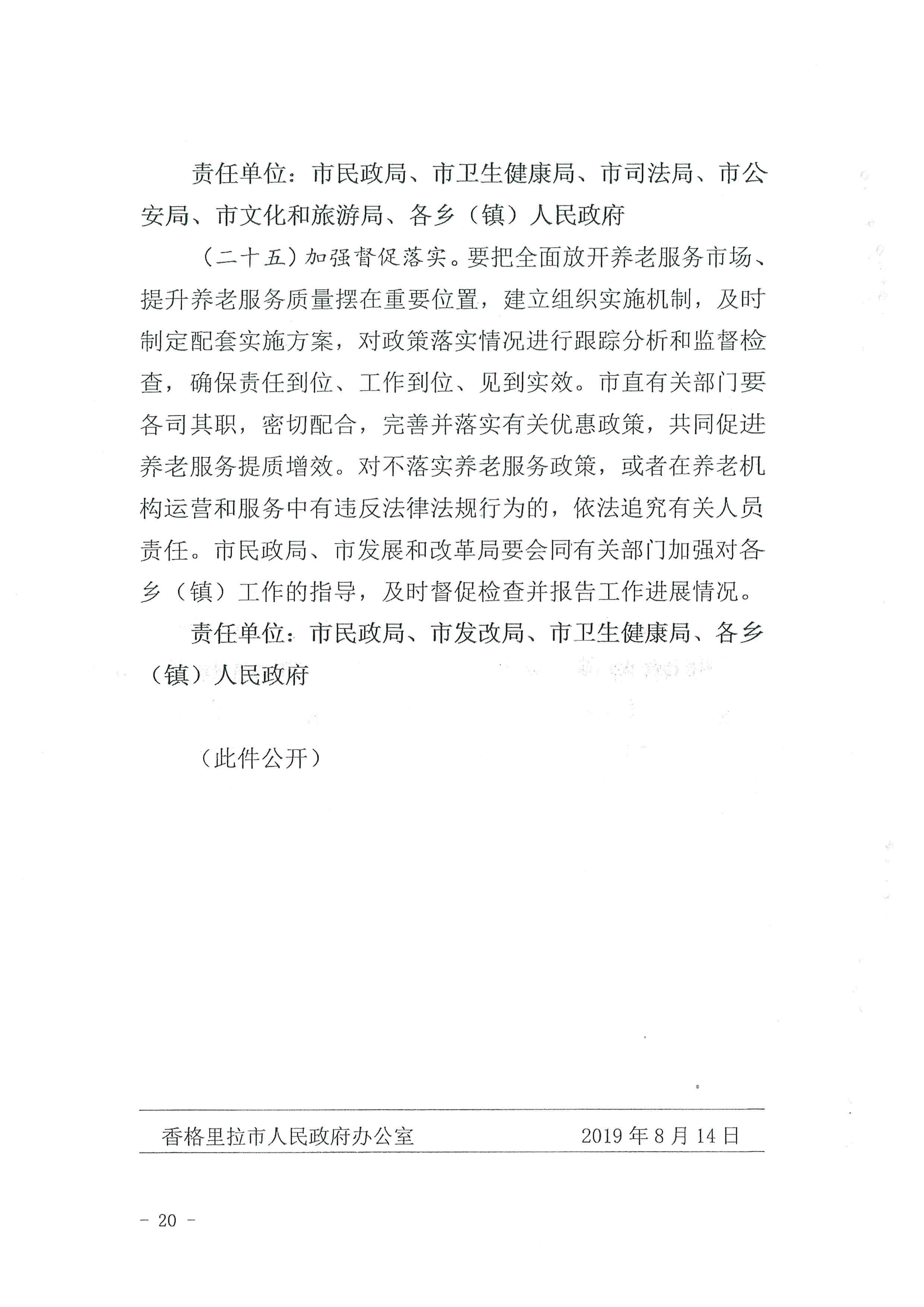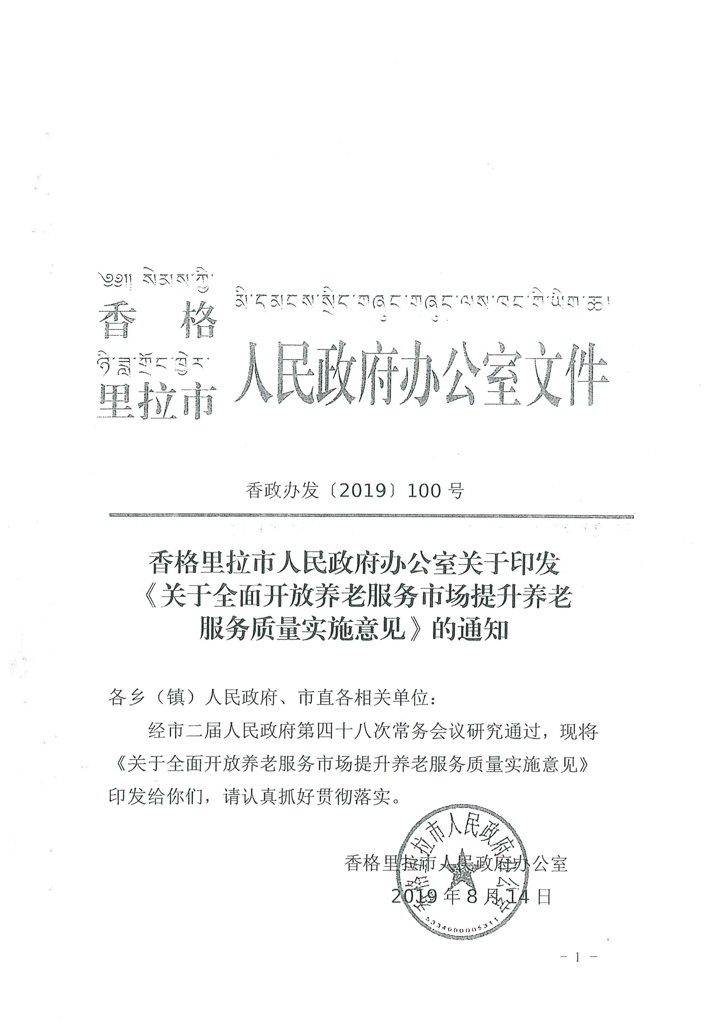 【养老服务】香格里拉市人民政府办公室关于印发《关于全面开放养老服务市场提升养老服务质量实施意见》的通知