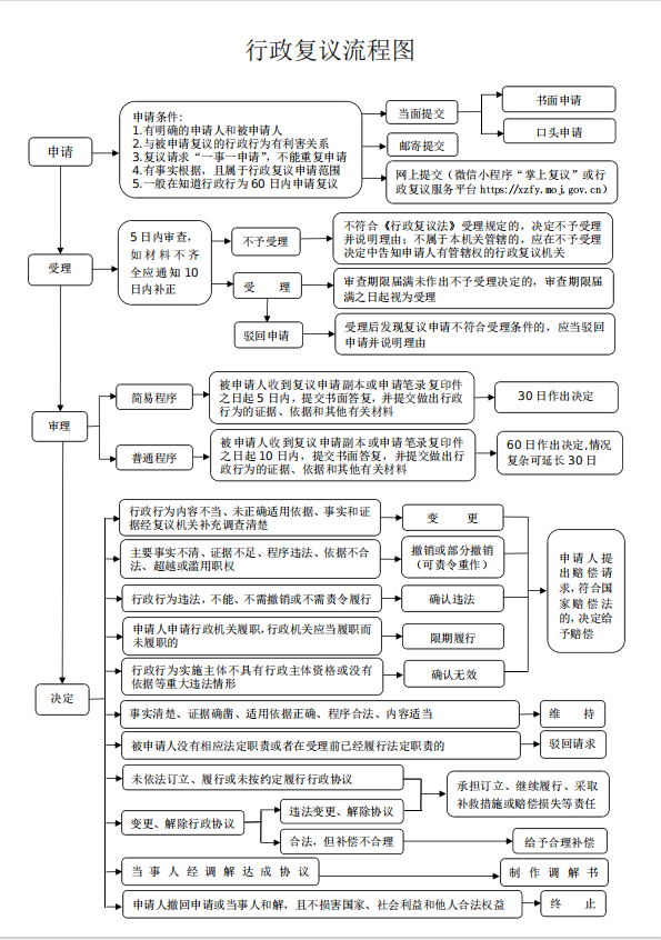 3.互联网渠道申请。登录行政复议服务平台(网址:https://xzfy.moj.gov.cn),点击“申请复议”,实名注册后,按照提示要求提交相关材料。或者进入微信小程序“掌上复议”在线提交行政复议申请。