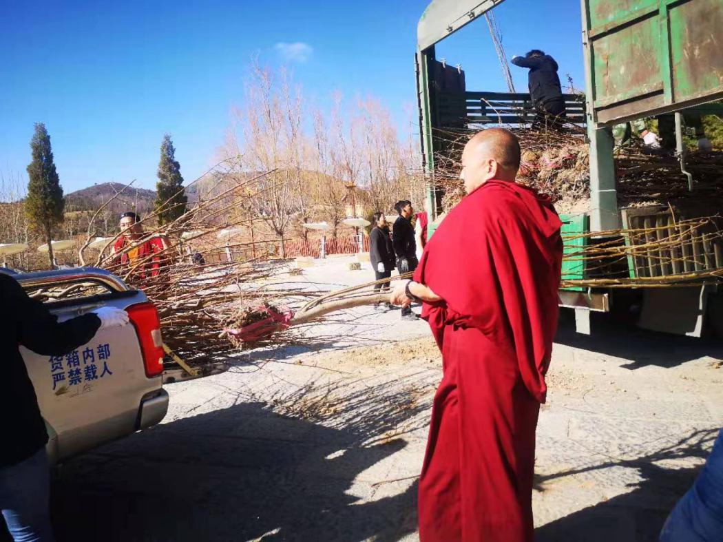 3月12日上午,各康参认真按照前期所上报的树种和数量逐一认领树苗,驻寺工作组积极配合,协助树苗分发、搬运等工作。12日下午,植树活动在大宝寺如火如荼地进行,大家既有分工又有合作,搬运树苗、种植、培土、浇水,各项步骤有条不紊地进行,一株株饱含希望的树苗被栽下。