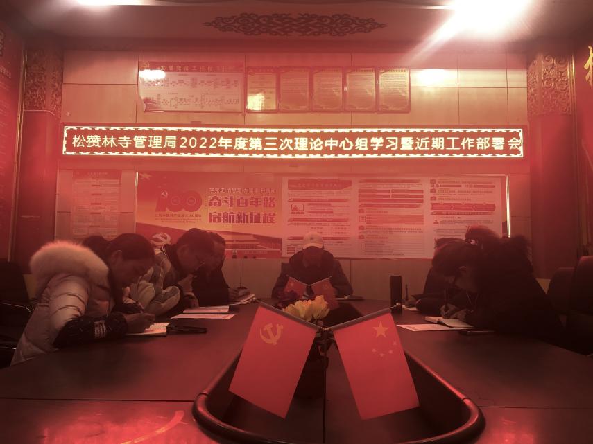 为不断提高我局干部职工的理论素质,实现利用理论指导实践各项工作。将各级党委、政府的要求全面的贯彻落实在各项工作中。我们于2022年2月24日在我局会议室召开香格里拉市松赞林寺管理局2022年度第三次理论学习中心组暨近期工作部署会议。全局在岗干部职工参加会议,并认真学习,做好会议记录。