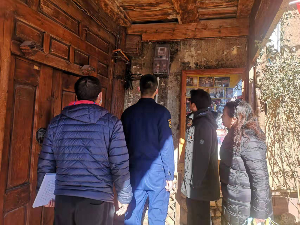 1月7日,市文化和旅游局联合市消防救援大队和迪庆州文物管理所对国家级重点文物保护单位中心镇公堂和迪庆州文物保护单位金龙街民居建筑群开展了深入细致的消防安全隐患排查整治工作.排查工作一是围绕消防安全工作组织领导和岗位职责履行情况、消防安全管理制度和消防安全档案建立情况、消防设施设备及使用情况3方面19个问题,根据每个文物点实际,逐一开展了深入细致的隐患排查工作,一是检查发现部分地方存在灭火器过期、用电线路裸露、违规使用火炉和液化气、电表箱安装不规范等问题。二是遵循即知即改原则,发现问题能及时整改的,要求责任单位(责任人)做到现场立时整改;无法及时整改的下达整改建议限时整改。三是根据发现的隐患问题及时与责任单位和现场负责人沟通,要求责任单位和现场负责人举一反三,全面开展深入的自查整改工作,确保严格履职尽责,坚决杜绝发生消防安全隐患事件。