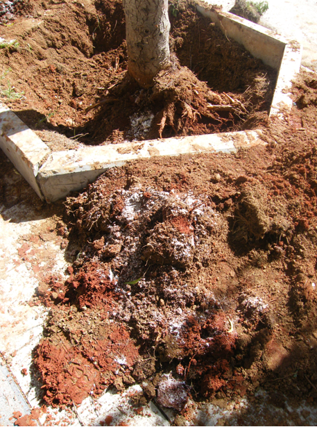 当记者赶到现场时发现,两株二层楼高的雪松根部有大量食盐,其中一株已完全枯死,另外一株还坚强地在枯枝上冒着几丝绿芽。据介绍,当日下午,工人准备对两株雪松进行补种,当挖开土层时发现雪松根部有大量食盐,便随即通知了城市管理综合执法局。据执法局黄向群介绍,香巴拉大道上的雪松种植于2007年,当年树围约12CM,经过七八年的生长,如今树围已近40CM,而食盐绝非种植雪松所需材料,而是人为破坏。如今,两株雪松的价值约为9万余元。