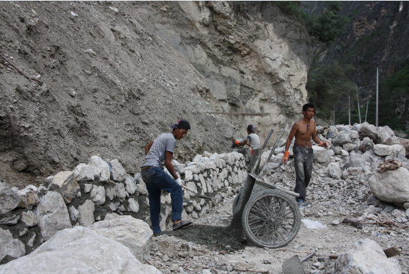 在进入景区的道路上,记者看到,工人们分工有序、工作有条不紊地进行着,他们在容易滑坡的地方修建挡墙、在有落石危险的地方建造涵洞。沿途清理塌方的铲车、挖掘机不停来回,一派忙碌的景象。据了解,该道路从214国道至巴拉格宗景区入口,沿河而上绵延30公里,作为地震恢复重建重点项目的景区道路恢复重建项目,从今年6月1日起正式动工。公路的恢复重建包括铺柏油、修建涵洞、建设防护网、进行路面修复等,总投资达4883万元,1—7月份已完成投资1500万元,预计年底完工。