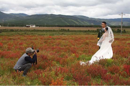 进入秋季以来,香格里拉处处皆是美景。国道214线小中甸路段的红色狼毒花不仅吸引了大批游客驻足留影,还受到了即将步入婚姻殿堂的新人们的青睐。(王维韬/摄)