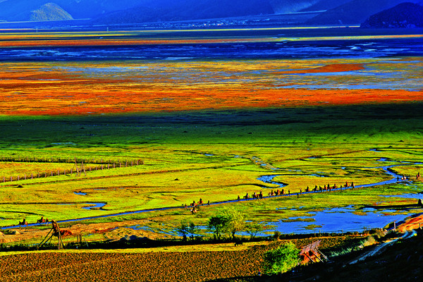香格里拉市地处青藏高原南缘,滇、川、藏交界处,位居大香格里拉生态旅游区的核心区、世界著名奇观“三江并流”世界自然遗产腹地、茶马古道的要冲。总面积11613平方公里。境内除藏族外还有汉族、纳西族、彝族、白族等九个世居民族。全市区位优势突出,气候复杂多样,自然生态条件十分丰富。历史悠久的茶马古道、厚重的民族文化、特色浓郁的人文景观、博大恢宏的自然景观巧妙结合于一起,使香格里拉市具有“人类最后净土”和 “高原明珠”及“心中日月”等多种美称,是“大自然最完美的创造”,旅游业的资源条件得天独厚。