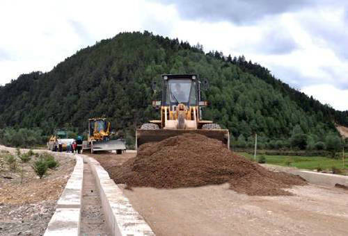 正在加快建设中的香稻公路一期建设项目。近年来,面对经济下行的压力,香格里拉市紧紧抓住投资拉动这一关键,狠抓重点项目建设,截止5月底,该市共完成固定资产投资21.3亿元,比上年同期增长47.22%。 (石显尧 摄影报道)