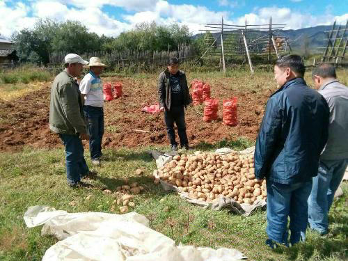据了解,今年,在香格里拉市农科局的牵头下,小中甸镇农科所与云南农垦天使薯业有限公司合作,引进马铃薯丽薯6号,在小中甸镇7个村民小组种植450亩,种植采用公司+农户+订单模式,由公司提供种子,每公斤3.5元,其购买的种子费用由市农科局承担,农户负责种植,马铃薯采挖后,由公司以每公斤1.4元收购。