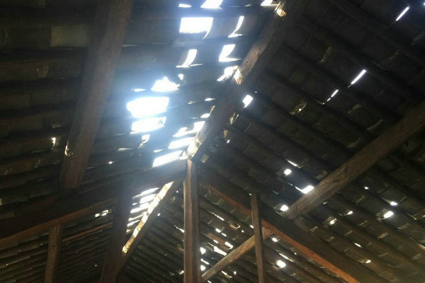 民房屋顶瓦片已经脱落