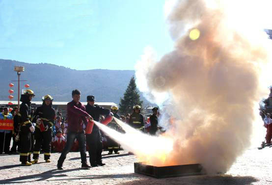 启动仪式宣读《2015年香格里拉市“11·9”消防宣传月系列活动方案》《关于表彰优秀社区消防宣传员的决定》,为优秀社区消防员颁奖,消防官兵演示“雪域红门汇”消防灭火救援科目,展示消防器材和消防宣传展版,发放宣传海报500多张。