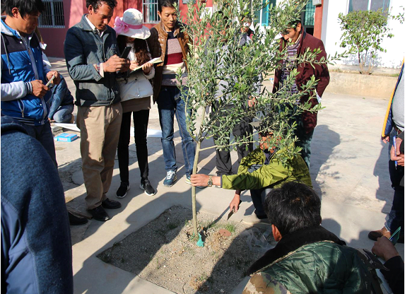 此次培训以实际操作(对油橄榄苗木嫁接及整形修剪、挖塘养塘、苗木定植、灌溉作了现场示范)与理论讲解方式(油橄榄基本特性,土壤、气候、光照、水份、品种选育、良种繁育、精细化管理、病虫害防治、油橄榄采收加工等)进行了专业培训,为确保项目实施提供良好的技术保障。经各方配合,技术培训工作圆满达到了预期效果。