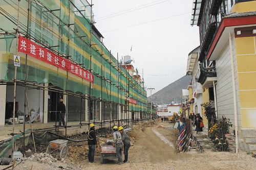正在进行棚户区改造的香格里拉市北郊片区旺池卡工人新村。据了解,今年,省住建厅下达香格里拉市棚户区改造任务3000户,香格里拉市城市棚户区改造分三个项目立项实施,即北郊片区、北门片区、建塘片区改造项目。北郊片区棚户区(危旧房)改造任务为1375户,涉及人口7900人,建设内容包括危旧住房改造,其中,D级危房82户、C级以上危房1293户。D级危房进行拆除后原址新建的方式,C级以上危房采取加固维修的方式,统一规划、统一实施改造。基础设施完善主要包括道路、给排水、照明、通信、供暖、环卫设施等。