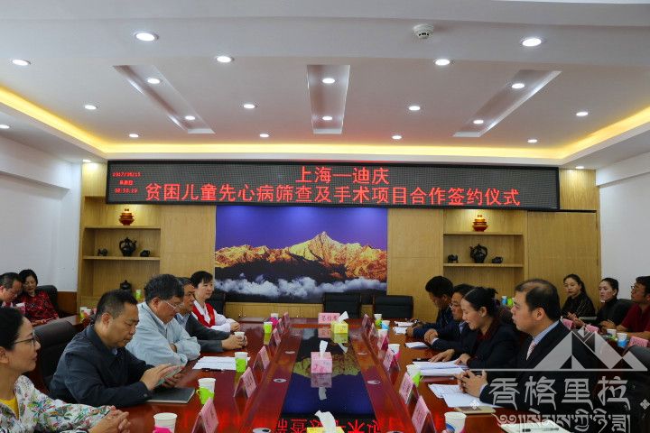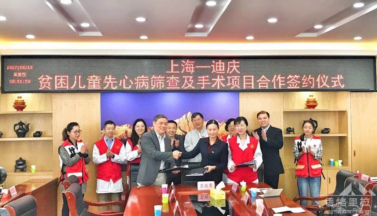 6月15日上午,上海——迪庆贫困儿童先心病筛查及手术项目合作签约仪式在迪庆州人民政府举行,州人民政府副州长和丽萍、上海市志愿服务基金会理事长陈振民、理事张新康、秘书长刘瑛、上海市驻昆办事处副主任王兰生、州教育局、州人社局、州卫计委、文体广新局、州接待办等部门相关领导、州、县(市)红十字会工作人员以及来自上海市志愿服务公益基金会、上海复旦大学附属儿科医院的专家及爱心人士参加了签约仪式。
