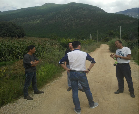 (图为公益团队正在与驻村工作队员讨论高原农产品如何销售)