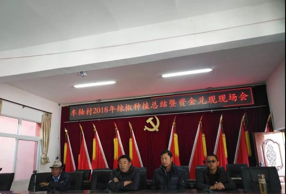 “ 辣椒种植是香格里拉市金江镇车轴村在推进精准扶贫过程中,结合当地农民种植经验而推广的富民产业,也是村特色集体经济的重要组成部分。车轴村辣椒种植按照“品种特色化、种植规模化、产销一体化”的模式,结合市场需求进行订单种植。截至目前,460亩辣椒全部收购结款完毕,83.52万元总款已经陆续发放到113户农户手里,辣椒收入从7万余元到1000余元不等。户均收入达7391元,平均亩产达1008.7公斤。”