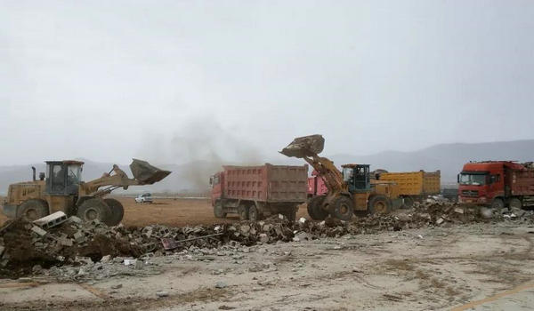 当天上午10点,伴随着大型机械的轰鸣声,德通驾校大门、围墙等建筑物瞬间化为一片废墟;东风车往来穿梭,将一车车建筑垃圾运往尼史村建筑垃圾填埋点。香格里拉市城区违法土地依法强制拆除工作领导小组、尼史村群众及全市驾校负责人等近百人共同见证了强制拆除过程。