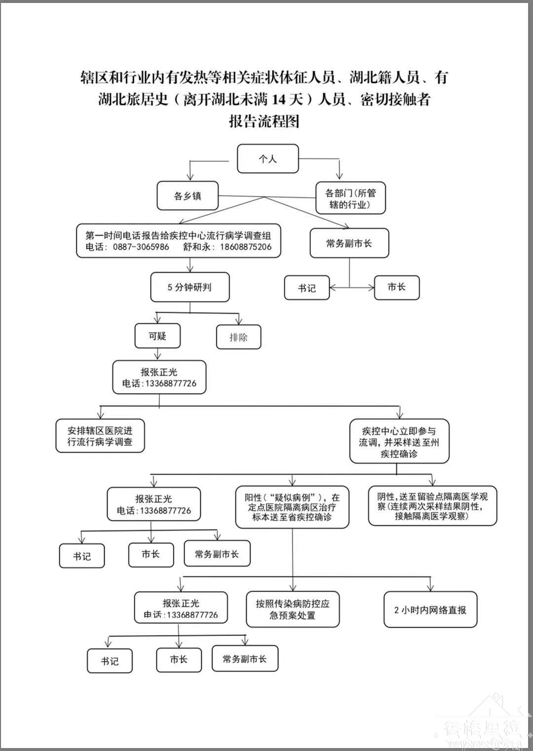 二、严格落实报告制度1.为确保重点人群摸排精准、管理有序,各乡(镇)、各单位要严格按要求填写《州外入香人员汇总日报表》,并经主要领导审核把关后按时上报市防控办。2.针对新排查出的辖区和行业内有相关症状体征(发热、咳嗽等)人员、湖北籍人员、有湖北旅居史(离开湖北未满14天)人员以及密切接触者,各乡(镇)、各行业部门要第一时间报告(具体流程图附后)。