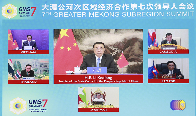 国务院总理李克强9月9日上午在人民大会堂出席大湄公河次区域经济合作第七次领导人会议并发表讲话。柬埔寨首相洪森主持会议,老挝政府总理潘坎、缅甸国家管理委员会主席敏昂莱、泰国总理巴育、越南总理范明政和亚洲开发银行行长浅川雅嗣出席。会议以视频方式举行。