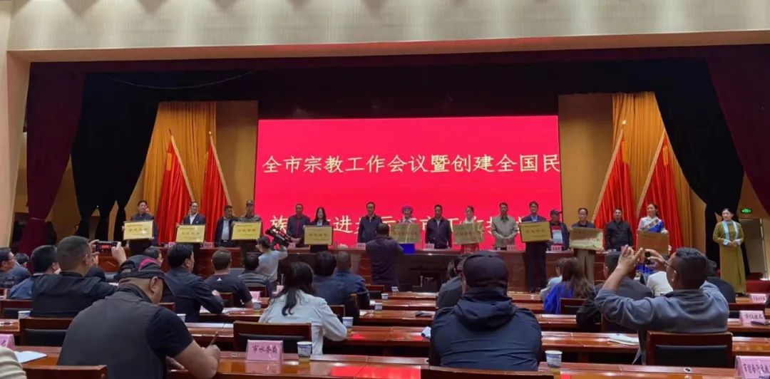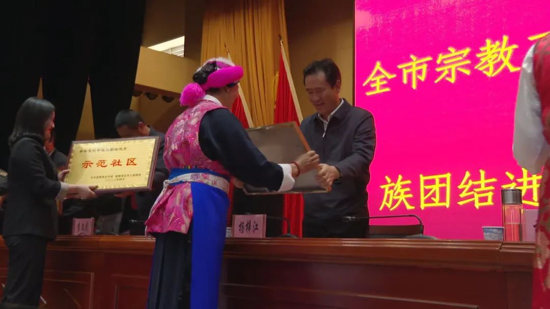 会上宣读了《中共香格里拉市委香格里拉市人民政府关于命名首批民族团结进步示范单位、民族团结教育基地和“民族团结之家”的决定》并为首批香格里拉市民族团结进步示范单位、民族团结教育基地和“民族团结之家”进行了授牌。