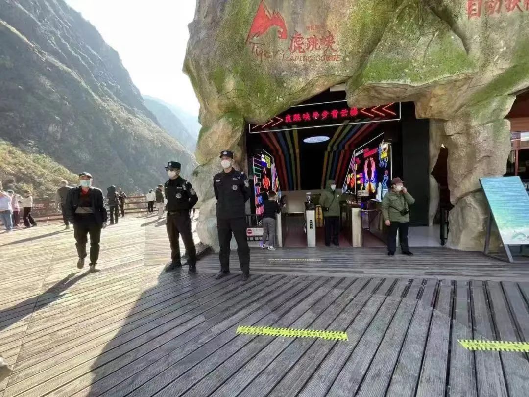 据香格里拉市公安局特警大队副大队长田宇介绍,针对独克宗古城客流暴增的情况,古城执勤点增加了警力配备和值守,24小时为景区游客提供服务和援助,让大家感受到平安香格里拉的温暖。