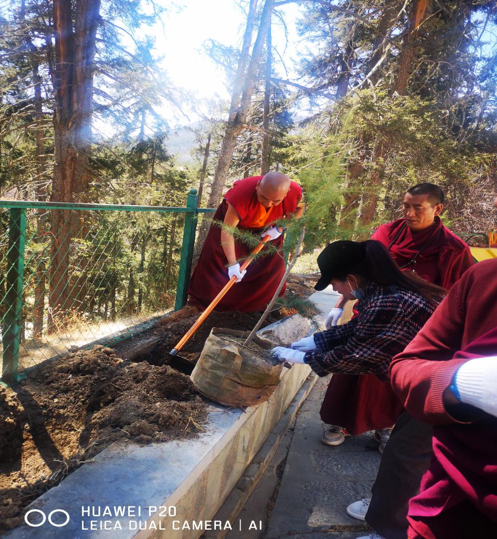 阳春三月,草长莺飞,在这大地回春,万物呈现勃勃生机之际,为认真践行习近平总书记提出的“绿水青山就是金山银山”理念,积极响应州委、市委号召,引导教职人员充分发挥爱国利民,造福社会的优良传统,3月12日,根据驻寺工作安排,松赞林寺“践行‘两山’理念,助力生态文明”主题植树活动如期开展。