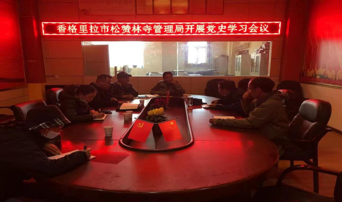 在会议上,江小军局长紧紧围绕学懂弄通党史与学习新中国史、改革开放史、社会主义发展,学懂弄通中国共产党云南历史、迪庆历史、香格里拉历史,学懂弄通党的民族宗教工作史、藏传佛教史、松赞林寺爱国史,做到学史明理、学史增信、学史崇德、学史力行,学党史、悟思想、办实事、开新局。动员干部职工以高度的政治责任,增强“四个意识”、坚定“四个自信”、做到“两个维护”,坚决贯彻落实党史学习教育工作任务。