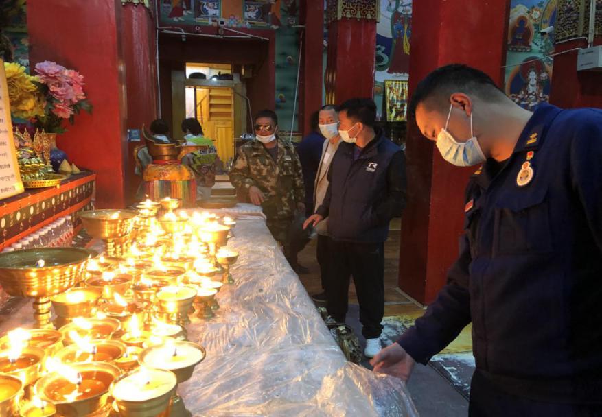 根据香格里拉市人民政府办公室印发《香格里拉市2021年安全生产夏季专项行动实施方案》香政办发【2021】70号文要求。为强化松赞林寺安全生产工作,有效化解安全生产领域重大风险,确保于5月17日举行三年一度的大威德金刚法会佛事活动顺利进行,于5月14日组织松赞林景区公司安全生产部门及尼旺宗消防救援站对松赞林寺三大殿、八大康参及僧舍外围逐一进行了安全隐患排查。