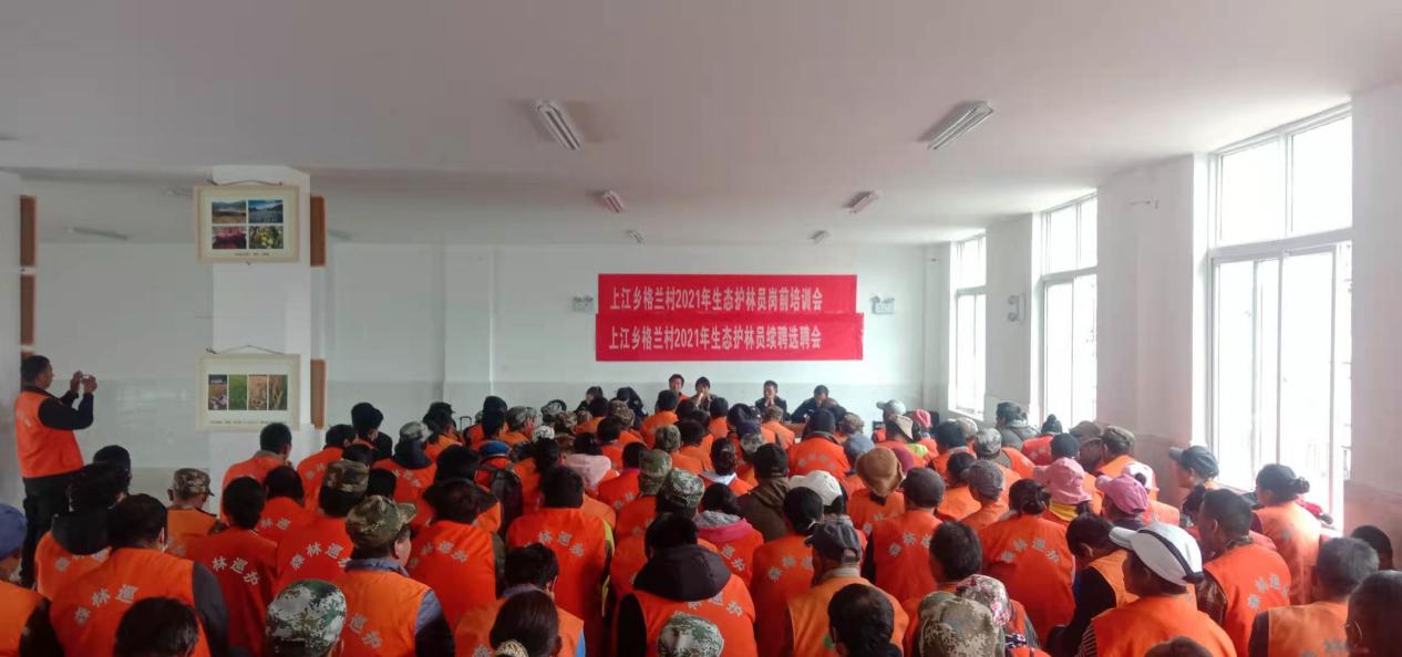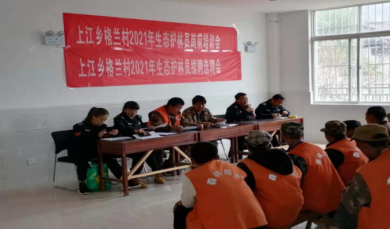 根据《香格里拉市2021年度贫困人口生态护林员聘用管理工作实施方案》、《香格里拉市上江乡建档立卡生态护林员管理办法》在格兰村格兰二组支部活动室召开生态护林员续聘会议,会上,我局扶贫工作队成员唐贵华讲解了《格兰村建档立卡生态护林员管理办法》,林场工作人员杨海霞讲解了《香格里拉市上江乡建档立卡生态护林员管理办法》及培训
