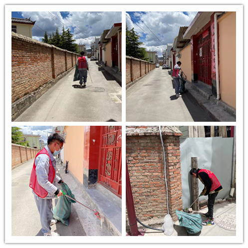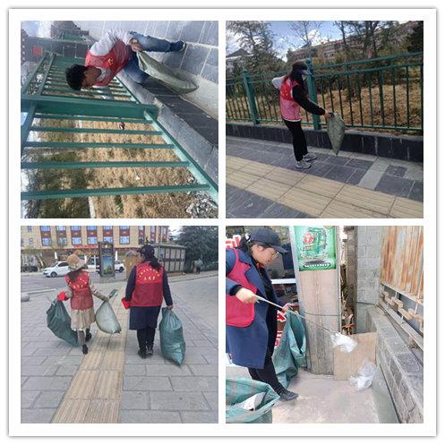 上图为网格卫生责任区创卫存在问题达标劝导志愿者服务活动照片