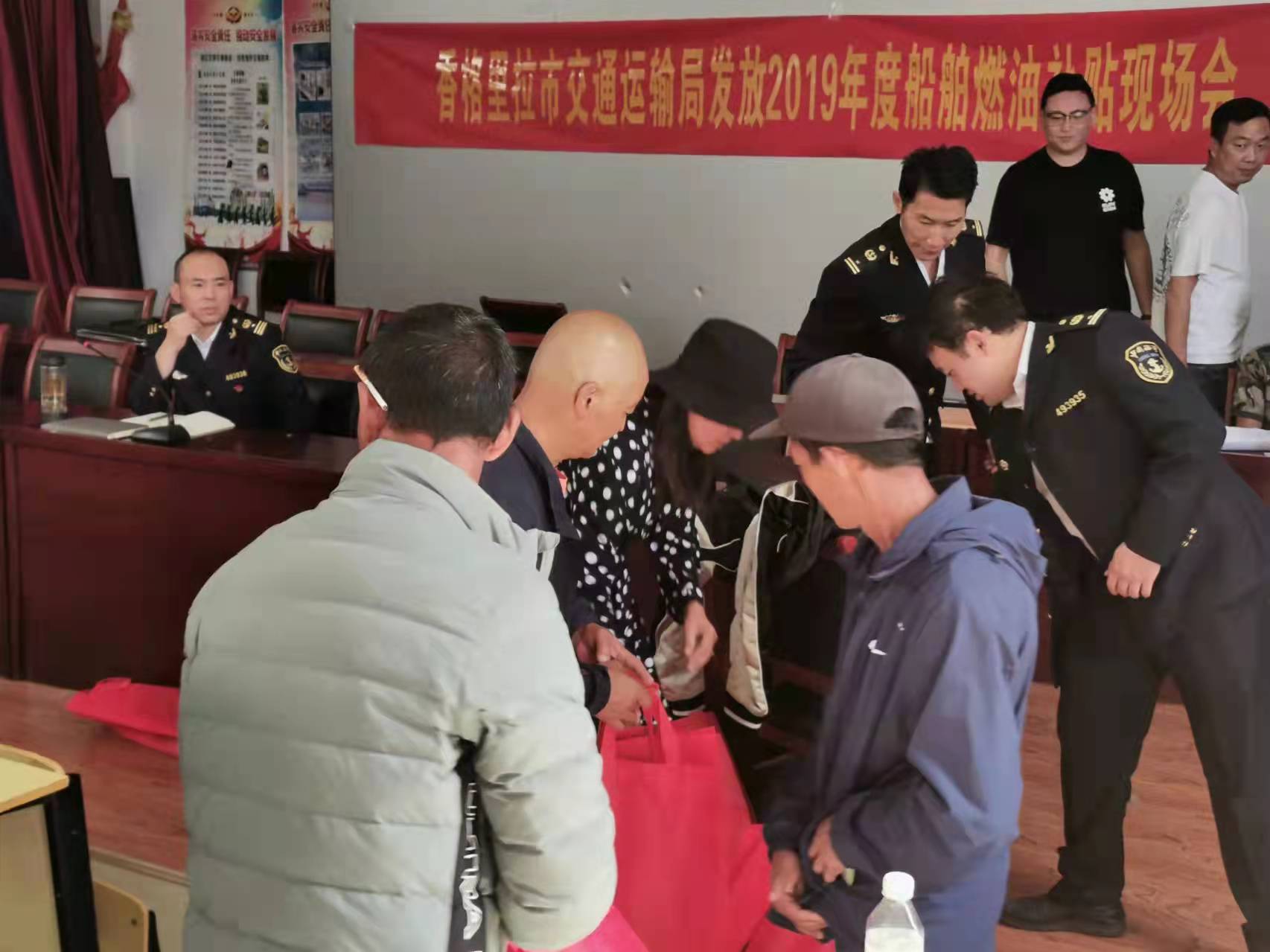 2021年10月26日,由副局长刘斌带队前往金江镇召开燃油补贴发放现场会,与会的有金江镇政府工作人员和地方海事处工作人员,33名船主一名请假,实到32名。通过现场办卡,确认信息,签字确认。补贴资金于2021年10月29日全部到账,燃油补贴发放工作圆满结束。