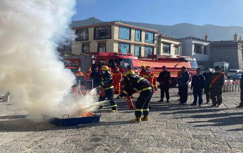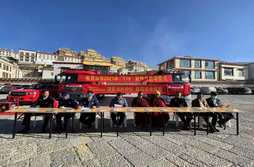 根据香格里拉市人民政府办公室印发《香格里拉市2021年安全生产夏季专项行动实施方案》香政办发【2021】70号文要求。为强化松赞林寺安全生产工作,有效化解安全生产领域重大风险,在2021年11月9日上午松赞林寺管理局、松赞林景区公司、尼旺宗派出所、尼旺宗消防支队、松赞林寺民主管委会联动组织僧侣及景区安全生产部工作人员开展以“落实消防责任,防范安全风险”为主题的2021年119宣传月启动仪式。