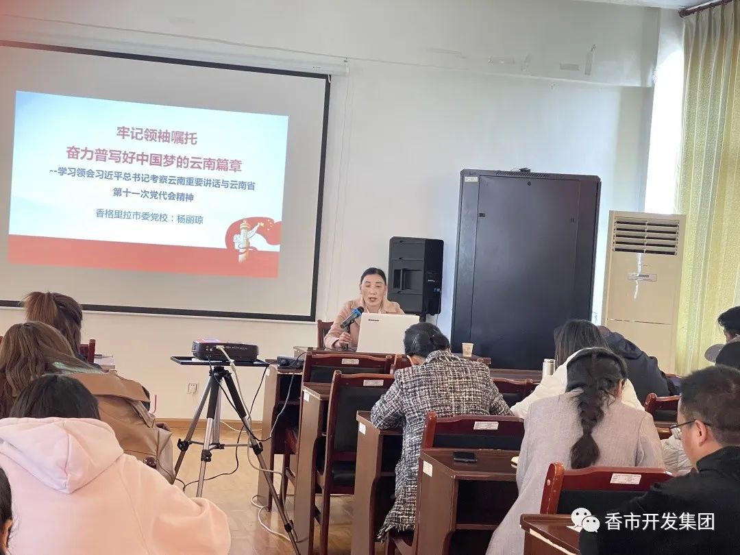 本次培训特邀请到香格里拉市委党校高级讲师杨丽琼老师为大家宣讲习近平总书记考察云南重要讲话精神及省第十一次党代会精神。杨老师授课认真、细致,讲解内容十分清晰易懂。