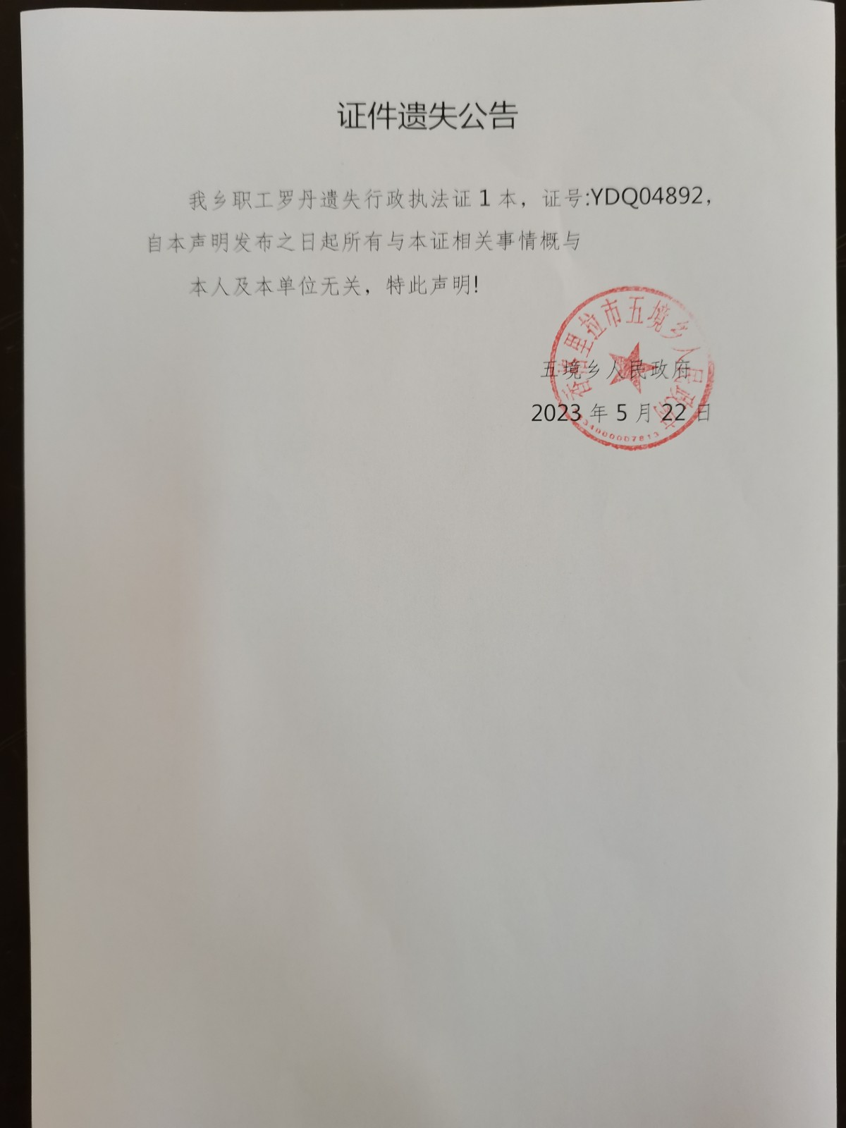 证件遗失公告