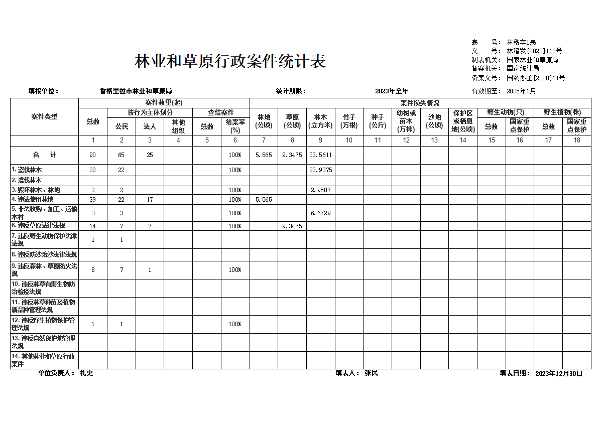 2023年林业和草原行政案件统计表