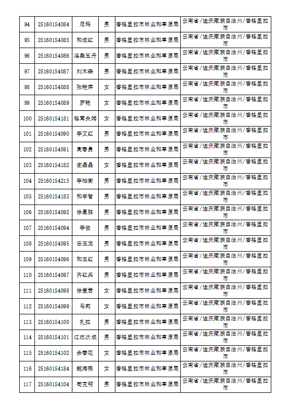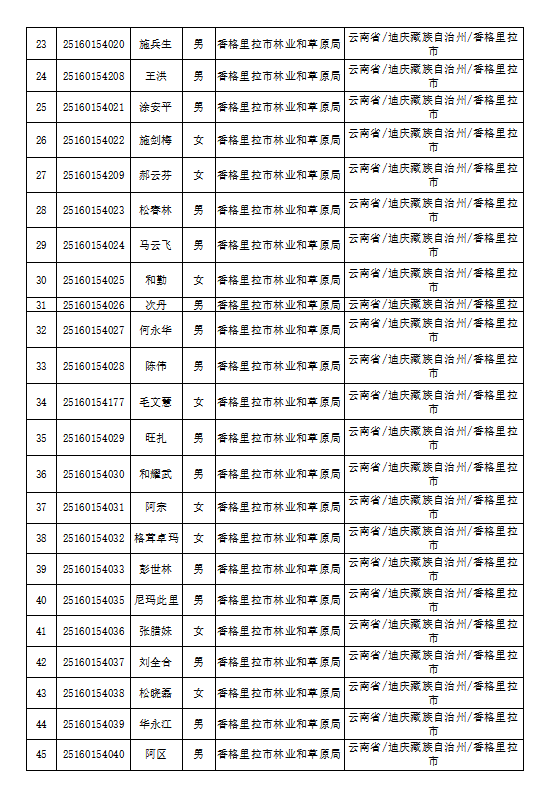 迪庆州生态环境局香格里拉分局 执法人员信息公示(2024年5月5日更新)
