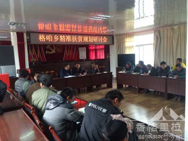 2015年10月19日,格咱乡召开精准扶贫规划调研会,参加会议的有班子成员、村三委成员、各站所负责人。会上,格咱乡党委书记郭丰尚要求各村根据实际情况各自发表意见,提出扶贫重点,发展方向;规划先行,制定切实可行计划。乡长史小松就如何把握、准确认识精准扶贫,从产业调整、基础设施建设、要求各村建言献策,制定规划,规划需与“十三五”规划吻合。各村、各站所代表先后发言,从基础设施建设、产业发展、旅游开发、教育、医疗等方面提出了不同的意见、建议和要求。其中,格咱村所提出的文化活动传承,以经济促文化发展,做好文化传承保护,文化包装,建议在每个村设立一个文化传承点是此次研讨会的亮点。下一步,乡党委政府将召开专题会议,聘请专业人员制定全乡精准扶贫规划,各村按照要求,结合实际制定各自规划,计划在两年内全部实现脱贫。