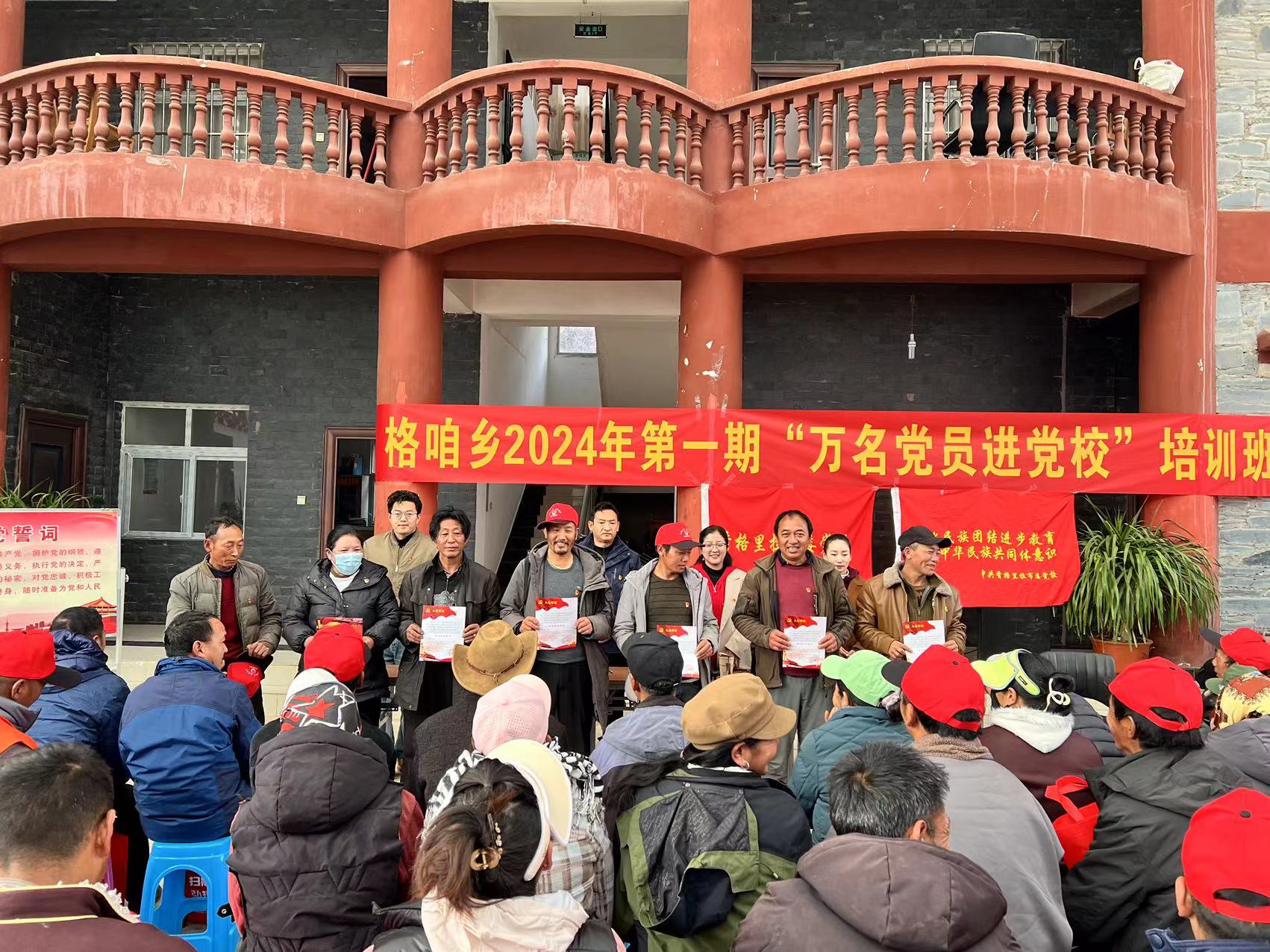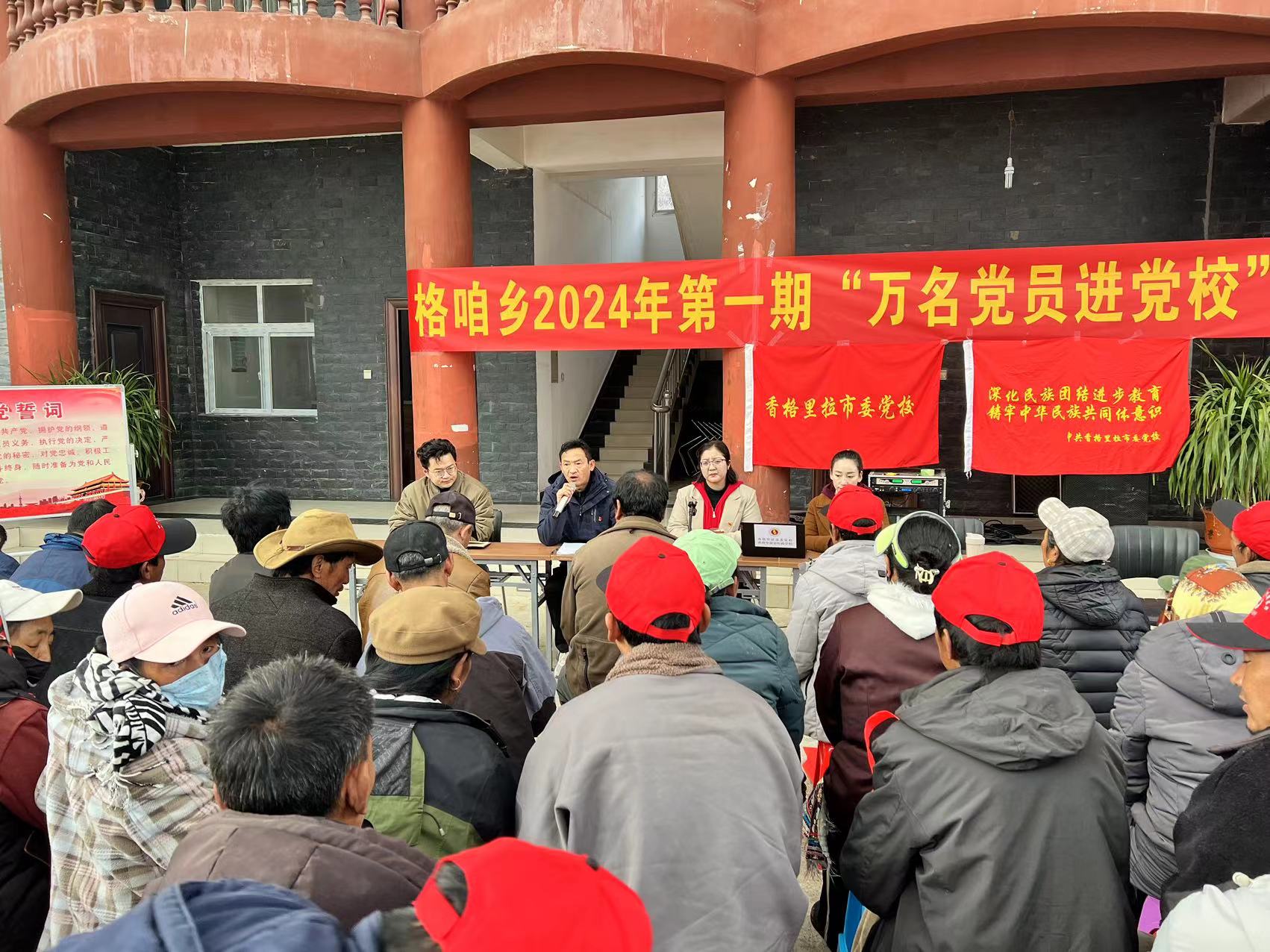 根据市委组织部、市委党校要求,格咱乡党委政府精心研究,结合实际情况制定方案,于2月29日在浪都乡开展格咱乡2024年第一期“万民党员进党校”培训班开班仪式,市委党校讲师、乡党委副书记、浪都村全体党员出席。