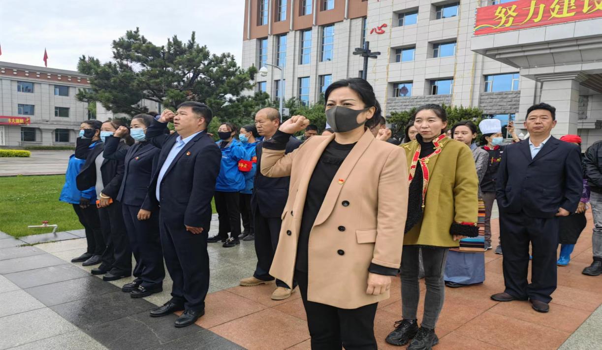 2022年7月1日上午,香格里拉市直机关在行政中心进行升旗仪式,五星红旗伴随着雄壮的国歌冉冉升起在行政中心的高空,全体同志严肃的排队向国旗行注目礼,其次,全体党员在党旗下重温入党誓词,牢记使命担当,不努力奋进