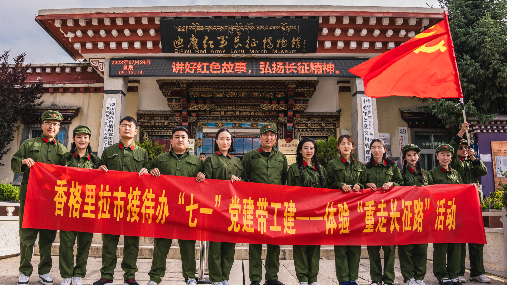为深入学习贯彻党的二十大精神,全面贯彻习近平新时代中国特色社会主义思想,以丰富多彩、生动活泼的主题活动为载体,回眸党领导革命、建设和改革的伟大实践,传承和弘扬党的优良传统。根据香格里拉市乡村振兴局《关于组织开展体验红色线路的通知》要求,结合市直机关工委印发的《关于在“七一”前后广泛开展庆祝中国共产党成立102周年系列活动的通知》,香格里拉市接待办于7月24日、7月25日开展为期两天的党建带工建——体验“重走长征路”精品线路活动。