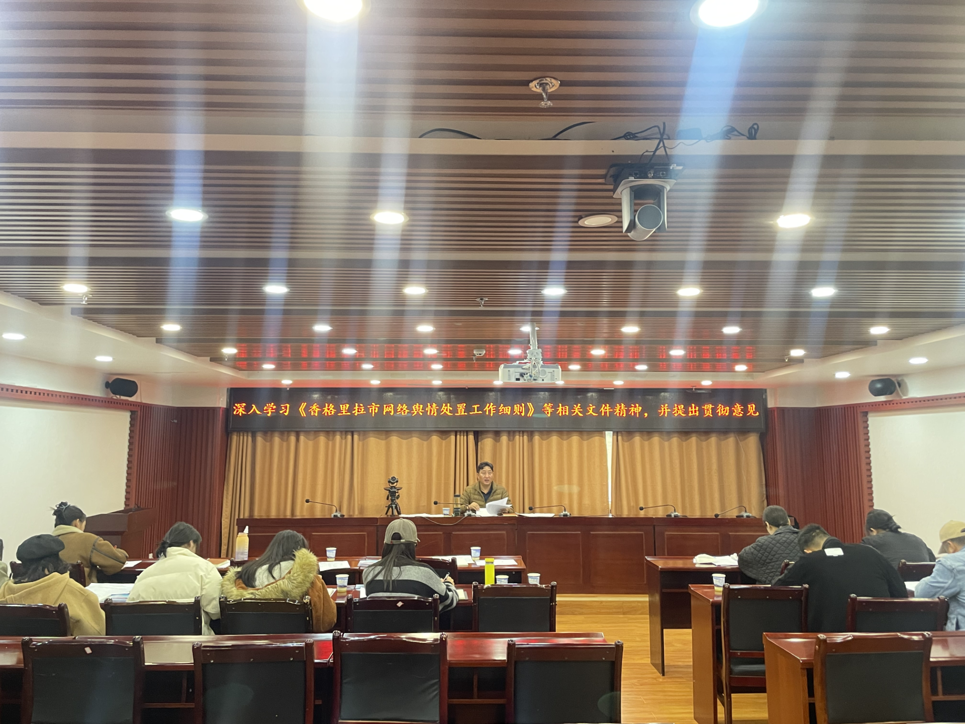 李志红主任对习近平总书记关于网络强国的重要思想或《党委(党组)网络意识形态工作责任制实施细则》等内容进行了领学。李志红主任详细介绍了《香格里拉市网络舆情处置工作细则》中网络舆情的影响力和发展形势,舆情的等级情况。在处置规范中的责任主体及分工、舆情监测、舆情研判与报送、处置原则及流程、反馈报告机制、舆论引导。且李志红主任重点学习《香格里拉市网络舆情处置工作细则》中的保障措施和责任追究,严格政治纪律、工作纪律、保密纪律、按照职责分工和工作要求,主动作为,认真开展本单位、属地内的风险矛盾化解,切实做好应对网络舆情事件的各项准备工作。